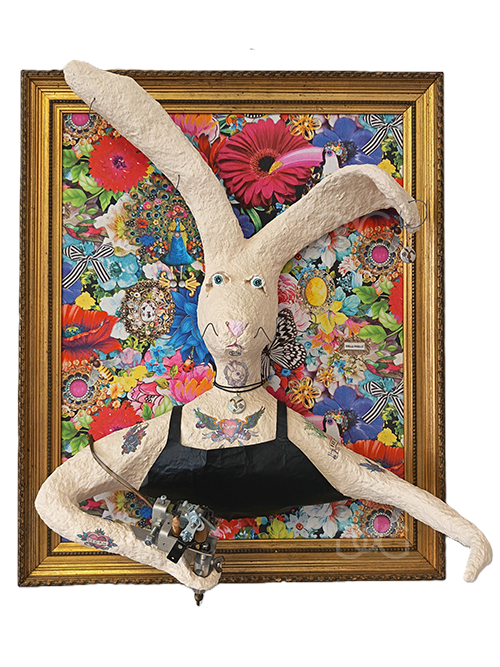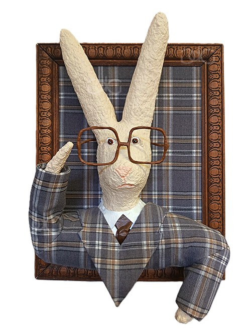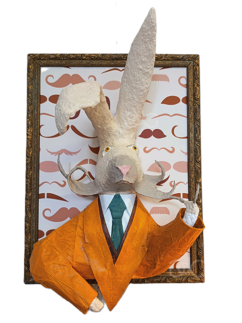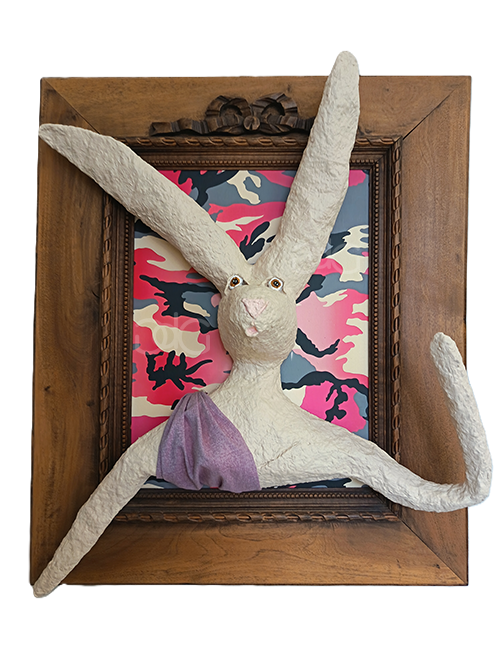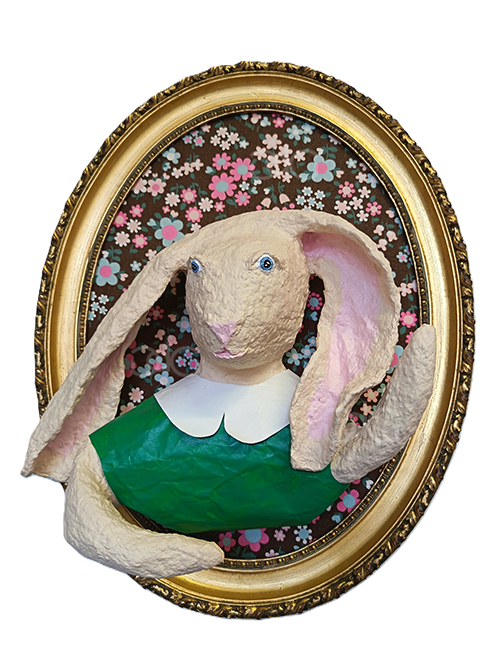 Composée de tissus, cadres anciens et papier mâché, cette collection de portraits en volume, oscillant entre sculpture et peinture, s’inscrit dans la riche tradition des galeries de portraits. Présentes depuis l’antiquité, ces galeries matérialisaient le souvenir d’un défunt et affiliaient l’individu à une généalogie plus ou moins réaliste. Dynastie, ne déroge pas aux normes de représentation alors en vigueur durant des siècles : chaque personnage est caractérisé par des éléments symboliques propres – accessoires, vêtements et spécificités physiques – afin d’idéaliser son image. Les notions d’identité, de transmission et de mémoire sont ainsi au cœur de cette série singulière.